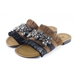 SANDALIAS ALPE RAFIA BICOLOR CON CRISTALES
